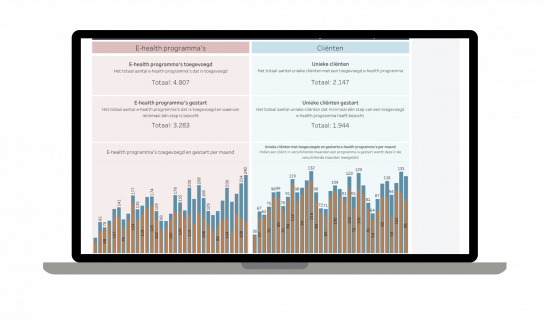 Om de impact van e-health te vergroten, is data over het gebruik ervan essentieel. We delen daarom de belangrijke data rondom het gebruik met jouw organisatie. Denk aan het aantal gestarte programma’s of het totaal aantal hulpverleners dat actief online programma’s heeft toegewezen. Het detailniveau van onze datarapporten stemmen we af op de grootte van de organisatie.